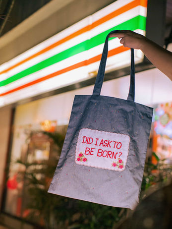 This time, the cake has made its way into a tote bag and a pillow—for those who are not content to live with their existential angst, they want to carry it around